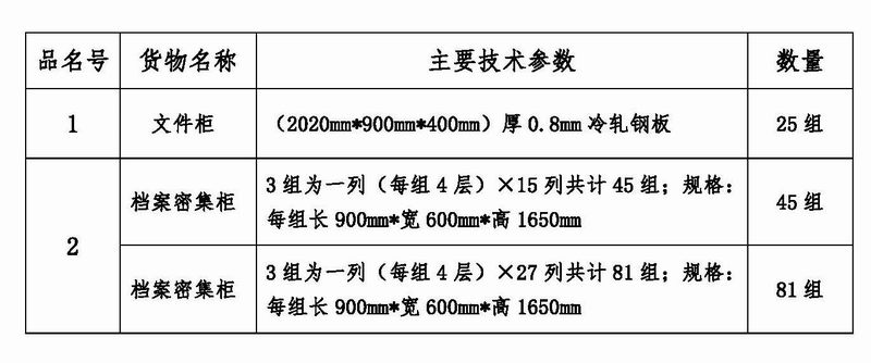 4、采購項目:密集架、文件柜。