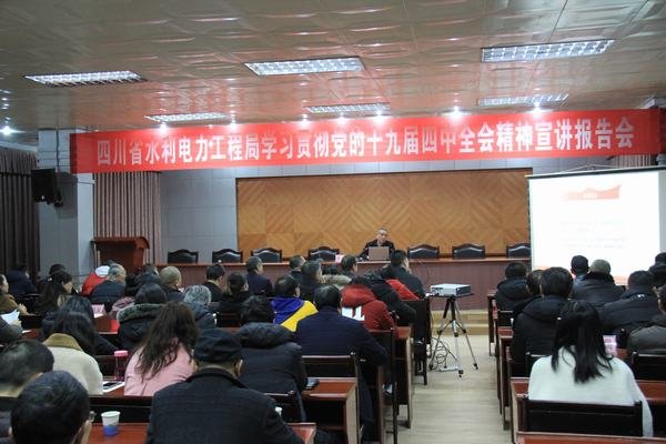 按照資陽市委統一部署,12月5日上午,市委宣講團成員、市委黨校決策中心主任、高級講師,黨校刊物《干部論壇》執行副主編,市委市政府決策咨詢委員會委員、社會組副組長鐘亮在資陽市國資委主題教育辦干部郭獲陪同下,到工程局宣講黨的十九屆四中全會精神,局黨委書記、局長鄔清富參加報告會,局黨委副書記、工會主席代勇主持宣講報告會。