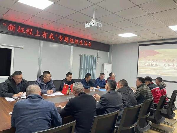 2021年11月18日,第一分公司黨支部在自貢小井溝項目部會議室召開“新征程上有我”專題組織生活會。會議由黨支部副書記姜虎主持,全體在崗黨員參加。