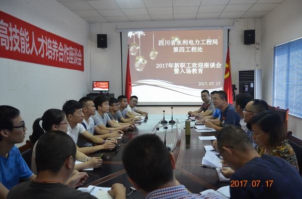 2017年7月17日下午4點,局第四工程處在毗河項目部會議室舉行新進大學生入職歡迎座談會。會議由處總工程師張亮亮主持,副處長羅茂林、工會主席方兵及毗河項目各部門主要負責人參加座談會。