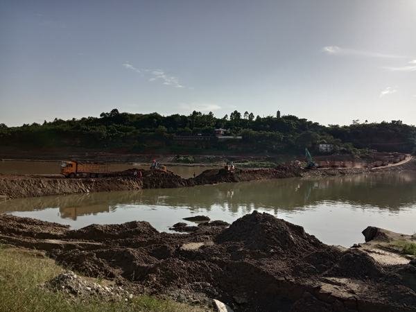 此次圍堰施工分為上游圍堰和下游圍堰,采用粘土填筑,總長度414.95米,總填筑方量超過8萬方。2018年9月3日正式開始上下游圍堰填筑,項目部在克服諸多不利因素影響下,10月9日上游圍堰順利合攏,下游圍堰預計將于2018年10月15日完成填筑工作。