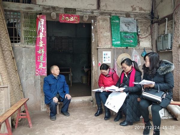為全面落實脫貧攻堅省際交叉考核安排部署,2019年12月24日,工程局組織開展脫貧攻堅入戶調研活動,局工會副主席、機關綜合黨支部書記付麟麗帶領李敏、劉紅麗、馮磊一行,前往安岳縣鎮子鎮玉峰村對工程局27戶對口幫扶對象進行全面的入戶問卷調查。