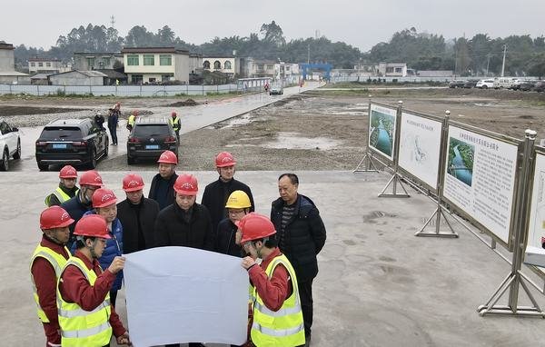 尹曉東一行抵達項目部后,經體溫檢測和安全告知,在公司和設計院領導及項目部負責人的陪同下,首先察看了營地建設,隨后前往觀景平臺觀看樞紐工程效果圖、岷江中游航運規劃方案示意圖,聽取了工程平面布置及施工情況介紹,其后深入到左岸堤防、篩分站、拌合站、基坑上游鋼筋加工廠、發電廠房、泄洪沖沙閘等施工現場檢查指導,詳細了解安全生產、進度質量、文明施工等相關工作情況。