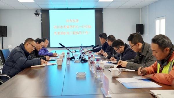 現場檢查后,尹曉東一行在項目部會議室聽取了工程局公司及設計院公司關于虎渡溪項目建設管理的專題匯報。代勇對尹總一行蒞臨項目部檢查指導工作表示歡迎和衷心感謝,并談到,虎渡溪項目是工程局改制后承建的第一個較大水電項目,項目施工管理嚴格落實集團公司和鐘杰董事長要求,嚴格按照標準化要求進行建設管理,公司通過該項目的實施著力在水電項目施工管理上再上新臺階,進一步提升公司“水利鐵軍”的品牌形象。鄒世界匯報了項目概況、工程建設、質量管理、安全文明施工、環保水保、目標任務完成等情況以及2021年工作思路。羅濤介紹了項目設計方面的主要情況。