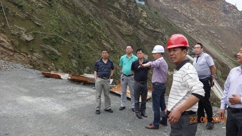 2014年5月22日下午3點(diǎn),宜賓市水務(wù)局總工廖建孫、宜賓市質(zhì)監(jiān)站站長(zhǎng)楊斌、宜賓市防洪度汛辦劉煉、筠連縣水務(wù)局局長(zhǎng)李澤明、筠連縣水務(wù)局工程股胡吉華、筠連縣團(tuán)林鄉(xiāng)政府人大主席、三川水務(wù)公司副總郭仕勇、三川水務(wù)公司項(xiàng)目部經(jīng)理張長(zhǎng)興、三川水務(wù)公司技術(shù)員宗德宇、監(jiān)理單位現(xiàn)場(chǎng)代表羅立等一行人對(duì)后溝水庫(kù)樞紐工程進(jìn)行了防洪度汛安全大檢查。項(xiàng)目部副經(jīng)理周加利、吳兵,項(xiàng)目部副總工王志,項(xiàng)目部安全部部長(zhǎng)洪偉等陪同檢查。