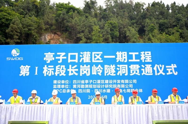 6月6日下午,由建設公司承建的亭子口灌區一期工程I標總干渠長崗嶺隧洞全線貫通儀式在長崗嶺隧洞進口舉行。建設公司黨委書記、董事長袁斌,亭子口公司黨委書記、董事長廖建強出席儀式。