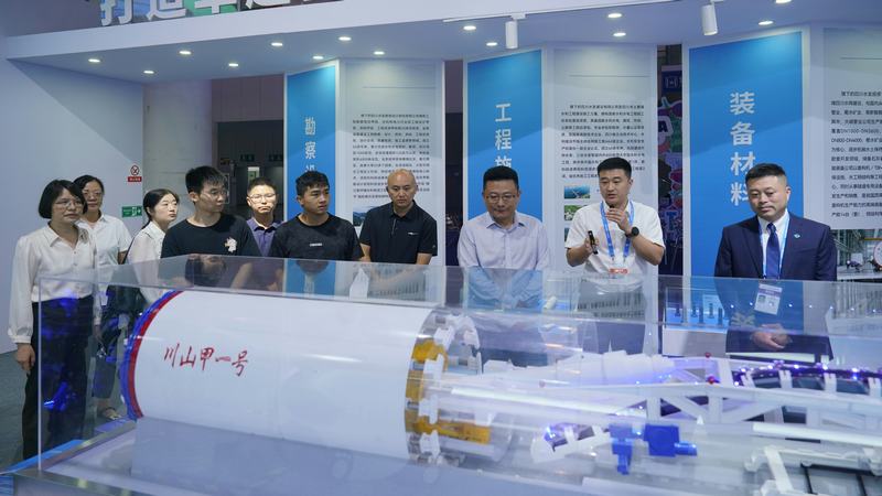 本次參觀以位于科技創(chuàng)新館(5號展館)N511展位的集團(tuán)展廳為重點(diǎn),以省委省政府“四化同步、城鄉(xiāng)融合、五區(qū)共興”發(fā)展戰(zhàn)略,水利廳黨組“三個服務(wù)”工作理念,立足四川“一主四片”水生產(chǎn)力布局,以及集團(tuán)各大業(yè)務(wù)板塊為核心,進(jìn)一步加深了公司干部職工對集團(tuán)產(chǎn)業(yè)能源、勘察設(shè)計、工程施工、智慧信息、水務(wù)產(chǎn)業(yè)、裝備材料產(chǎn)業(yè)、瓶裝水產(chǎn)業(yè)以及各大工程項目的了解,并在講解員的帶領(lǐng)下學(xué)習(xí)了集團(tuán)新興裝備如“川山甲1號”盾構(gòu)機(jī)、CTR450懸臂掘進(jìn)機(jī)等的施工工況及市場前景。