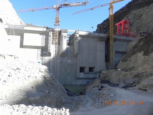 11月30日15時,九龍峽水電站大壩工程4#壩段2#梁吊裝完閉,標(biāo)志著歷時3年艱辛建設(shè)的九龍峽水電站大壩工程已達到全線封頂目標(biāo)。九龍峽水電站共有9個壩段,壩高62米,壩長158米,混凝土澆筑量約14萬方。