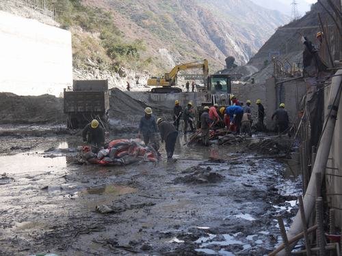 2015年12月14日,局鑫宏工程公司經理毛偉率固滴項目部總工鄭中華、生產副經理丁忠洪及項目部職工參加了閘壩基坑人工清理工作。