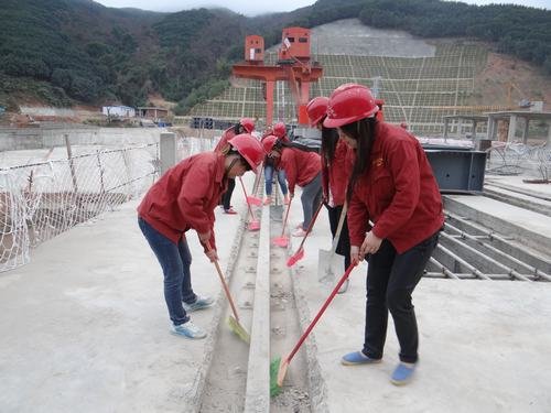 在這次勞動中,大家團結(jié)協(xié)作、干勁十足,發(fā)揚不怕苦、不怕累、不怕臟的精神,重活、臟活搶著干,特別是清理壩頂行車梁軌道和電纜溝中的垃圾時,因受尺寸限制,只能手捧出淤渣。經(jīng)過大家一上午的緊張忙碌,終于將壩頂清掃干凈,材料堆放整潔,安全警示標牌掛放規(guī)范。施工現(xiàn)場的容貌煥然一新。