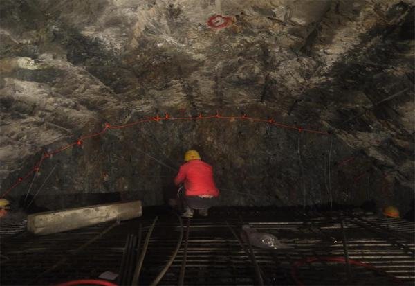 位于涼山州木里縣水洛河的鉆根公路隧洞,為單洞雙向行車隧道,隧道全長425m,隧洞開挖斷面較大,其中Ⅳ類圍巖開挖斷面9.36m×8.50m,斷面面積為64.91m2;Ⅲ類圍巖開挖斷面9.06m×7.30m,斷面面積為57.0m2。隧洞圍巖以區(qū)域淺表質(zhì)地槽沉積為主,巖性主要為變質(zhì)石英砂巖,節(jié)理裂隙較為發(fā)育、圍巖堅硬但完整性較差,以Ⅲ級、Ⅳ級圍巖為主。截止目前已完成隧洞開挖與初期支護施工270m,剩余155m。