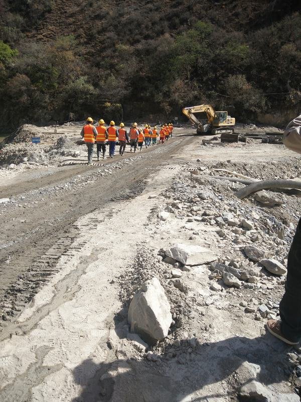 上午9:30,在指揮長甘曉華的號令下,演練活動正式開始。副指揮長鄭中華就暴雨強度、水位情況以及近期氣象情況做了簡明扼要的匯報,宣布啟動防洪應急預案。此次活動,模擬了洪水到來前組織壩上作業(yè)人員、施工機械設備的安全撤離,以及材料物資的搶險和安全轉移、上游圍堰填筑加固、搶險人員受傷救助等情景。在防洪警報拉響后,大家都保持著高度的警惕性和嚴肅性,壩上作業(yè)人員在應急小組長丁忠洪的安排下井然有序地快速撤離,迅速撤離到安全避險區(qū)。在基坑物資搶險轉移、圍堰加固、傷員救助演練中,大家都嚴陣以待、爭分奪秒、團結協(xié)作,表現(xiàn)出了一種難能可貴的團隊精神。